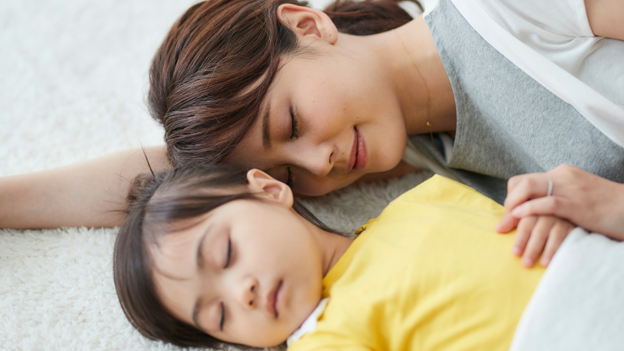 子供と一緒に寝る、横になる